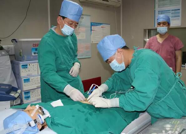 昨天,我们用纳米刀治疗的陈女士来自香港,是一位晚期胰腺癌病人。在香港,她的治疗失败了,肿瘤进展,阻塞胆总管,引起全身黄疸,不得不做了胆管内支架。不幸的是,支架引起胆道感染,持续发烧,两星期前体温才得以控制,可是,身体却变的非常虚弱,体重只有39.5公斤。在香港,接诊医生表示不可能再给她做任何治疗了。她多方打听,通过在广州的朋友得知复大肿瘤医院的纳米刀技术。咨询我之后,她来到我们医院,元旦前两天入院。