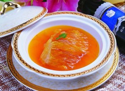 清煮鱼翅。取鱼翅50克,鸡汤500克。用清水净洗鱼翅,放入鸡汤内煮熟,低盐调味,忌加酱油,喝汤吃鱼翅,日服1剂,连服3~5剂。