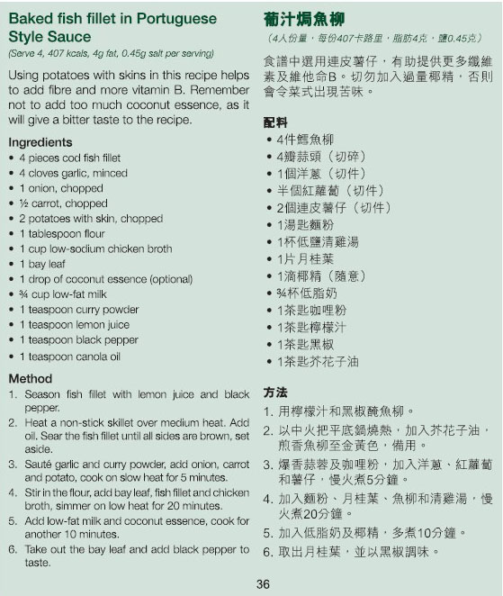 食谱中选用连皮薯仔,有助提供更多纤维素及维他命B。切勿加入过量椰精,否则会让菜出现苦味。
