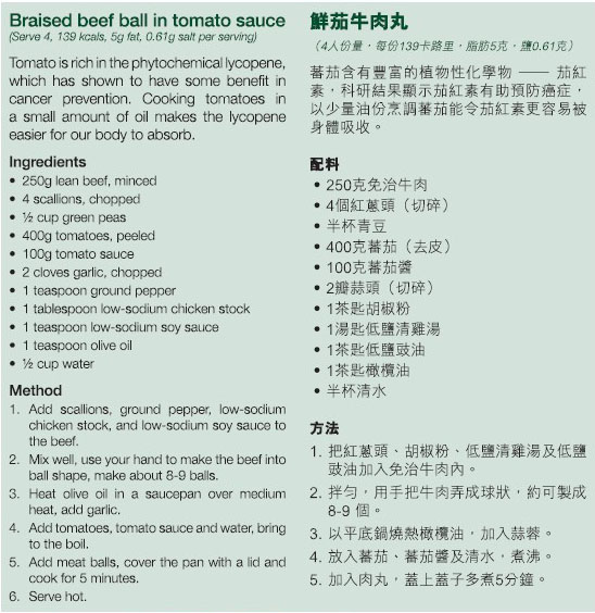 番茄含有丰富的植物性化学物——茄红素,科研结果显示茄红素有助预防癌症,以少量油份烹调番茄能令茄红素更容易被身体吸收。
