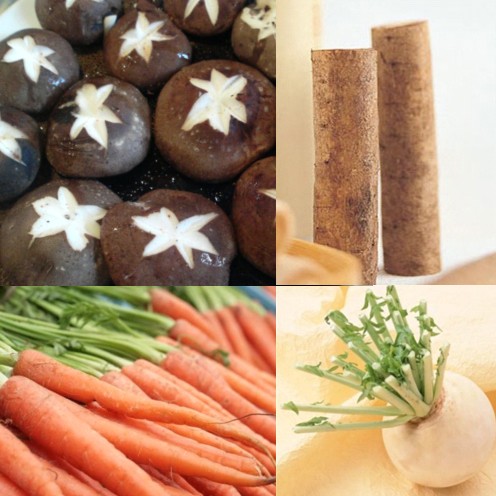 1/4根白萝卜,1/4丛白萝卜叶,1/2根胡萝卜,1/4根牛蒡,干香菇1—2枚,以上材料洗净切成大块,加入菜量3倍的水,以大火烧开,微火煮1—2小时,装入玻璃器皿,冷却后置冰箱保存。