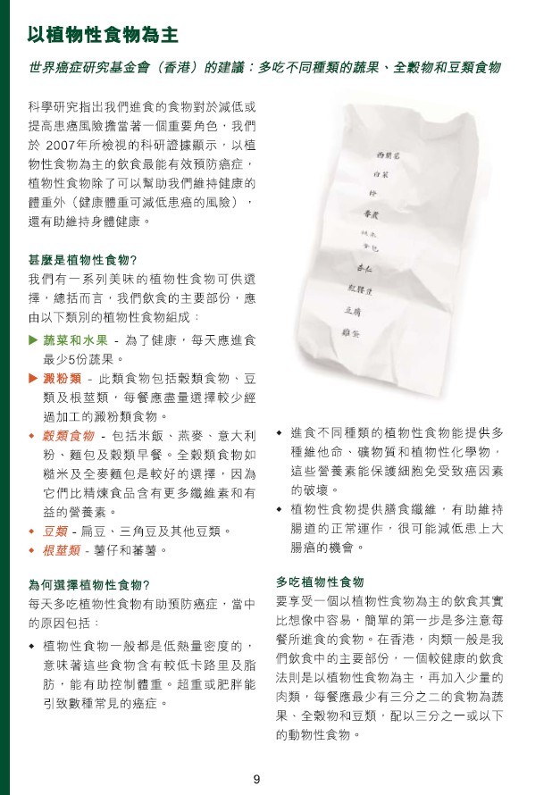 摘自世界癌症基金会(香港)《预防癌症的指引》