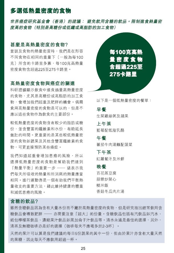 摘自世界癌症基金会(香港)《预防癌症的指引》