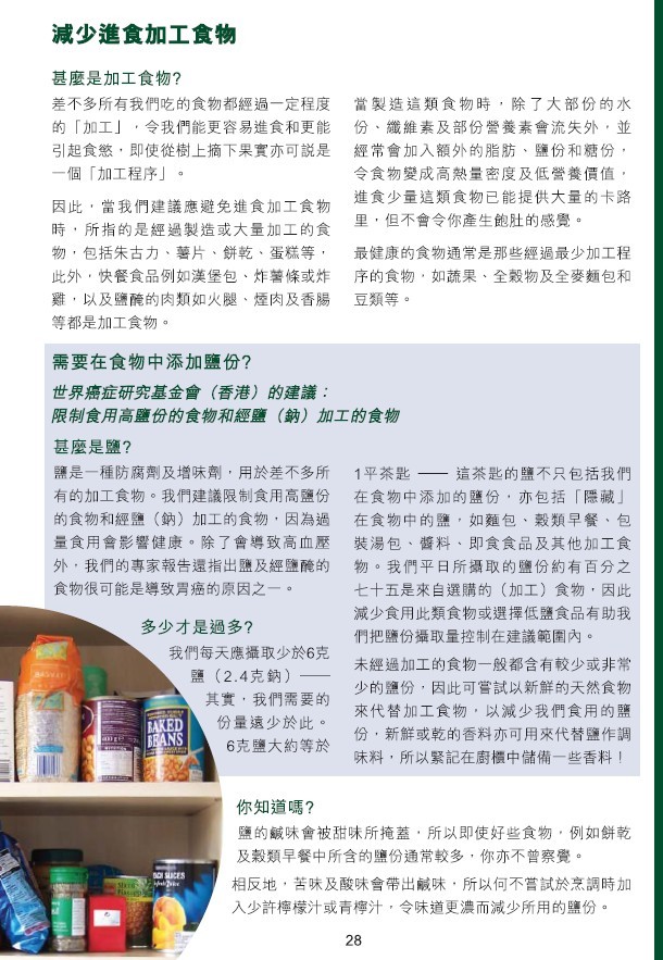 摘自世界癌症基金会(香港)《预防癌症的指引》