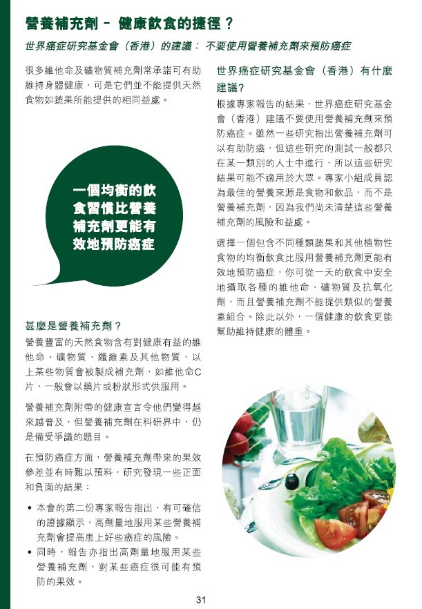 摘自世界癌症基金会(香港)《预防癌症的指引》