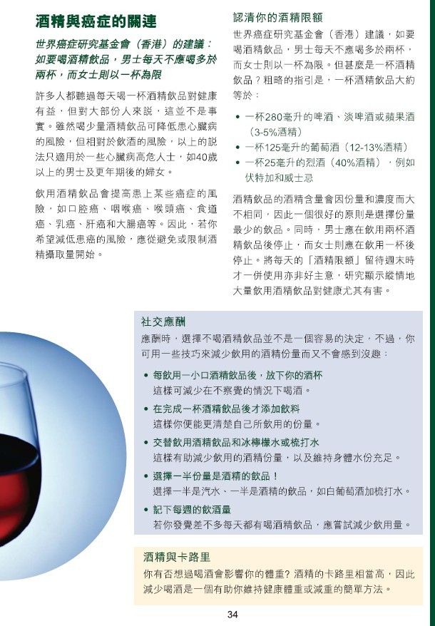 摘自世界癌症基金会(香港)《预防癌症的指引》