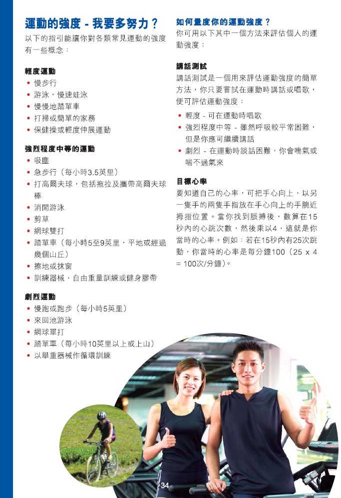 以下的指引能让你对各类常见运动的强度有一些概念: