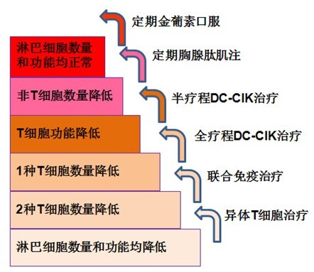 免疫治疗包括6种方法,根据免疫细胞数量和功能的降低程度进行不同程度的补充。补充程度由弱至强分别是: