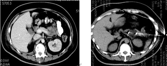 我们考虑,既然现有的方法无效,为什么不采用特殊的一些治疗呢?于是,我们采用了血管介入,将支配肿瘤的血管栓塞,再采用CT下经皮冷冻,将胸腔和胰腺部的肿瘤一点点、一块块冻除,……