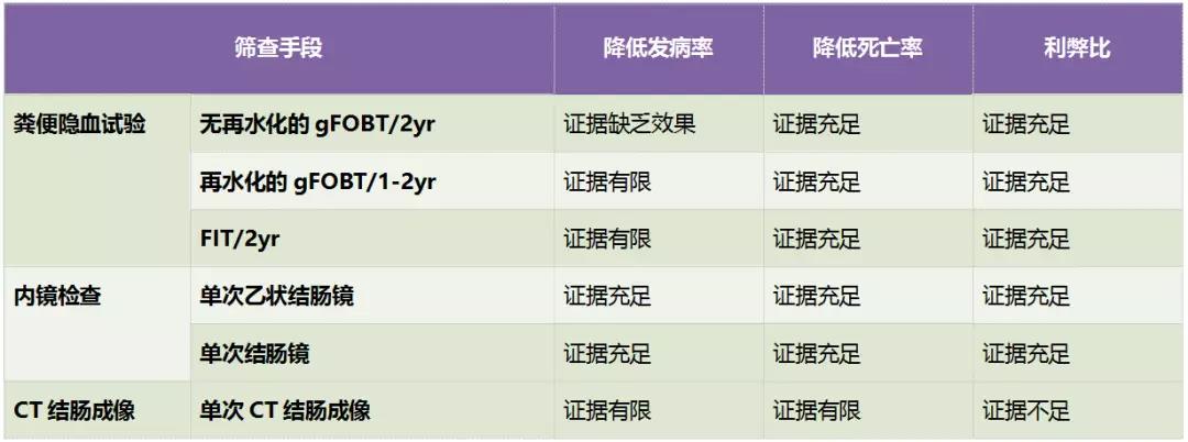 截至目前有充分的证据表明,通过粪便隐血试验和内镜检查筛查结直肠癌,能够降低其死亡风险,利大于弊,但不同筛查方法之间的孰优孰劣尚未可知。