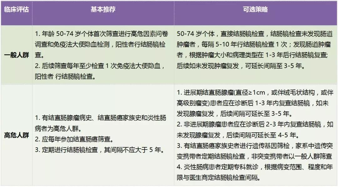 针对健康人群的结直肠癌筛查,指南有如下推荐: