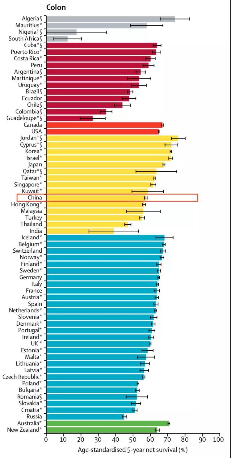 在经济发达的国家中,结直肠癌生存率很高。这当然与其较好的医疗条件分不开,但癌症筛查同样也功不可没。