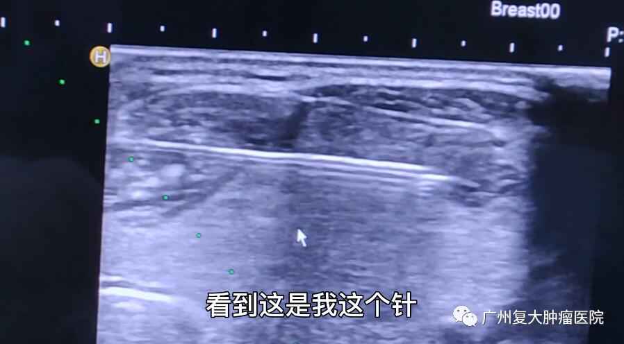 入院3天后,刘女士在完善治理前准备后接受了治疗。在B超引导下,牛立志院长用细针行穿刺活检,送术中快速病理检查,结果提示良性病变,穿刺病理:(右侧)甲状腺细针穿刺细胞学涂片中未查见癌细胞。得知良性结果后,牛立志院长通过微波消融术为其减少肿瘤体积,缓解肿瘤对患者呼吸道的压迫。