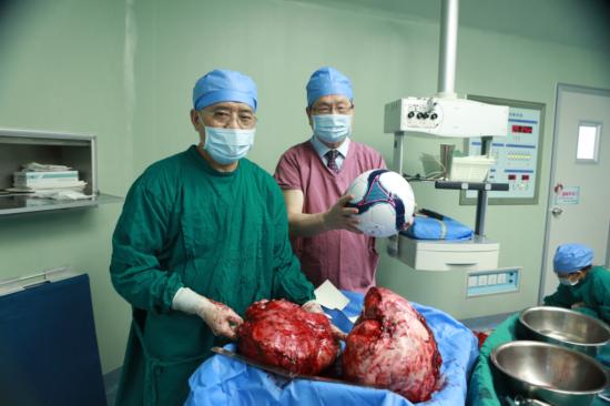 手术总共切除出来的肿瘤有两瓣,瘤体大小为61×54×40cm,重达15kg。冰冰的手术成功了!