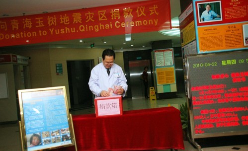 2010年4月23日早上8点30分,复大医院、广州复大肿瘤医院、广东复大医药有限公司在总院长徐克成教授的倡导下,集体为青海玉树地震灾区的人民进行捐款。