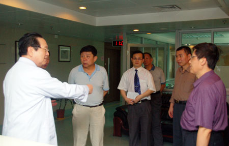 2010年5月17日下午,卫生厅党委书记、副厅长黄小玲、卫生厅副厅长廖新波、党委办主任吴子刚,以及卫生厅办公室副主任孙炳乾、医政处副处长冯宏祥等视察我院,对我院在科学发展观学习中所取得的成绩给予充分肯定。黄书记说:“你院已成为我们广东民营医院的典范,将来会成为全国的典范,希望你们肯定成绩,找出差距,争取将医院创建成世界闻名的特色肿瘤专科医院,为人民,为医学事业作出贡献。”领导同志对我院如何迎接省委汪洋书记视察作了指示。