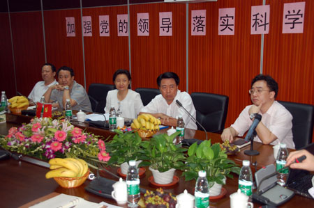 省纪委派驻省卫生厅纪检组长、监察专员亓玉台(左三)等领导正在听徐院长做汇报