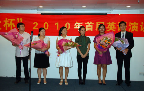 最后是惊心动魄的成绩揭晓环节。经过各位评委的认真评判,24号选手何丽华获得了冠军,她演讲的题目是“To be the one”。29号选手刘俊诣、30号选手王芳获得了亚军,4号选手孔小峰、11号选手郑欣、12号选手黄丽文获得了季军。相比其他选手,获奖者们在演讲内容、流利程度、英文文法、演讲仪态、姿体语言方面有更加优异的表现。