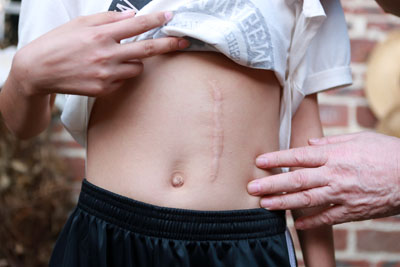 据莫小凤的父亲介绍,5年前小凤无意中发觉自己左中上腹部有肿块,经医院病理检查确诊为胰腺实性假乳头状瘤—
