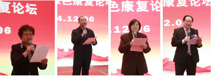 张文祥副局长(左)、梁健副会长(左二)、史安利会长(右二),徐克成教授(右)先后致辞