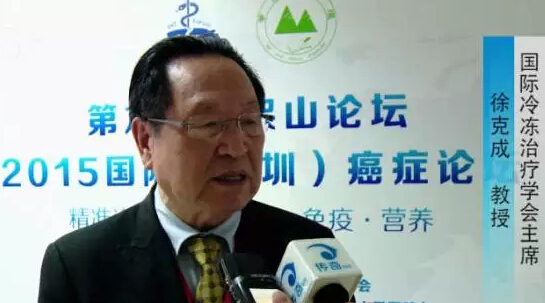 徐克成教授,国际冷冻治疗学会主席,他是一位研究肿瘤的医生,同时又是一名肿瘤患者,更是一位初步战胜了癌王肝癌的幸存者。谈起自己九年多的战癌经历。在会上徐克成提出了3c加p的治疗理念。