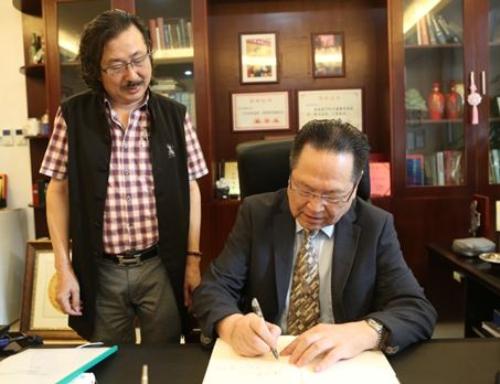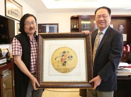 画家陈训勇(左)和徐克成院长(右)在赠画仪式上合影