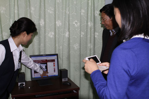 复大肿瘤医院护理部张萍主任向参观者展示复大的网站平台