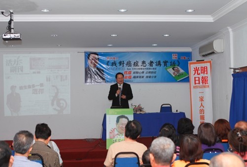 当晚的活动由马来西亚的刘丽宝小姐主持,活动开始后,她讲述了阅读《我对癌症患者讲实话》的心得体会,引发读者的共鸣,部分读者留下了眼泪。其后,徐院长针对本书的内容做了专题演讲。在演讲中,徐院长回顾自己40年治疗肿瘤的临床经历,带给听众很多癌症新观念,他鼓励患者摈弃对于癌症的恐惧,科学治疗,积极生活。徐院长在演讲结束后,举行了答疑会,听众争先恐后先徐院长提问,徐院长一一耐心解答。最后的环节是徐院长签名售书,签名售书台前围满了人群,听众们都拿着书等候徐院长签名。短短2个小时的发布会,卖出近300本书,徐院长表示,所有售书收入悉数捐给光明日报的癌症患者基金会,让他们资助身陷困境的病人。