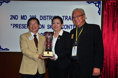 作为国际狮子会的领袖之一,刘丽宝主任于日前参加一场常年举办的308复合区培训员演说技巧大赛。此项演说技巧大赛的目的,除了为国际狮子会各区培训员们提供一个彼此交流与自我突破的平台。此外,主办当局更期待参赛者能够通过这种正面的竞赛与观摩,互相学习,提升自我演说与沟通技巧,将国际狮子会的精神发扬至世界各地。