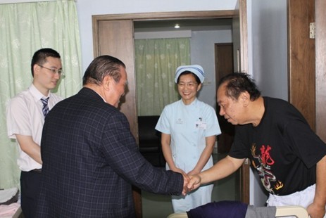 最后看望的病人是来自印尼的雅加达的50岁的女性患者,她是患者于2010年8月份出现咳嗽,经常出现刺激性干咳,而且夜间发作的时候,无法平躺入睡;当地医院认为她是肺结核,给予抗结核治疗,但是治疗后病情没有好转,反而持续恶化,来我院后,我院专家给予详细的检查和会诊,确诊为“肺小细胞癌伴转移”,予以“微血管介入疗法”,现患者咳嗽明显减少,不再咳痰,也没有气喘,精神和食欲都明显改善。说到这里,患者家属表示很感谢复大医院的治疗,因为复大医院纠正了其他医院的“误诊”,给患者生存的希望。