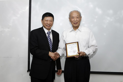 演讲结束后,王振义从广州复大肿瘤医院左建生总经理手中接过聘任书,受聘为复大肿瘤医院名誉顾问。这是继吴孟超院士被该院受聘为名誉院长和总顾问后,第二名被受聘为该院顾问的国家最高科技进步奖获得者。