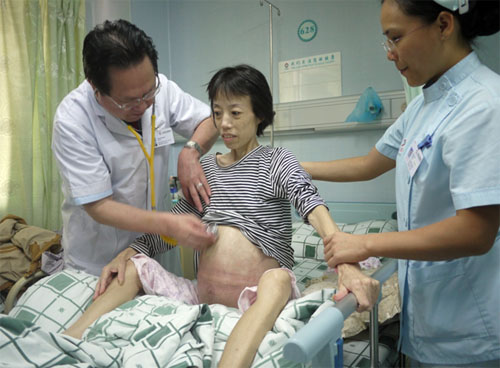 穆峰在征得医院同意后,10月18日下午登上前往萧山机场的飞机,次日,到绍兴县给徐万英会诊。徐万英的腹围有90多公分,还能走动,比起彭细妹入院时160多公分的腹围,有点“小菜一碟”。