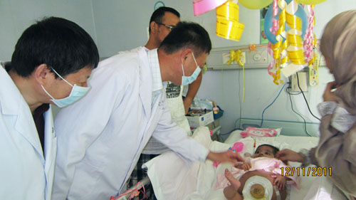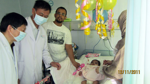 11月12日,广州复大医疗股份有限公司的王怀东董事长及左建生总经理,带着全体员工的祝福及关心,来到娜娜的床前。王怀东董事长,如慈父般亲切地抚摸着这位可怜的孩子,给她温暖,给她继续生存的勇气,也给了娜娜父母巨大鼓舞。看着孩子逐渐好转,娜娜的父亲从一开始的刁难,到如今已是180度的转变,非常理解及帮助医护人员的工作。