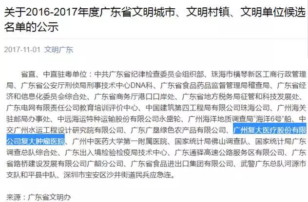 近日,广东省文明办组织开展了2016-2017年度广东省文明单位评选表彰工作。暨南大学附属广州复大肿瘤医院进入候选名单。