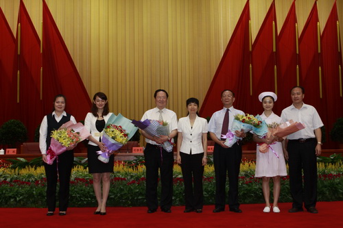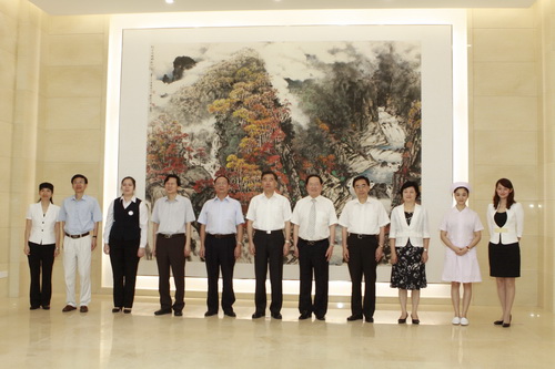 中共广东省委书记汪洋(中)、广东省省长朱小丹(右四)、广东省卫生厅厅长姚志彬(左二)、