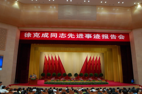 广东省委礼堂内徐克成同志先进事迹报告现场