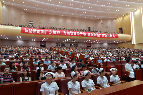 汪洋书记接见后,报告团成员在省委礼堂举行了大型事迹汇报,各自从不同侧面汇报了徐克成院长“生命不熄、奋斗不止”的从医生涯。有来自党政机关、各级医疗机构、企事业单位等1500人作为观众参与了此次大型事迹报告会。