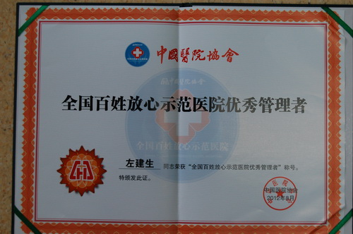 左建生总裁荣获“全国百姓放心示范医院优秀管理者”称号