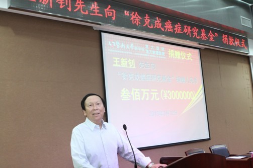 他在得知徐克成院长今年利用自己获得的奖励建立了”徐克成抗癌研究基金“后,毅然决定捐出300万用来支持徐院长的癌症免疫研究计划。这是设立此项基金以来,收到的第一笔大型捐款。此举是王先生对抗癌事业的重大贡献,也是对我院科技发展的重大支持。