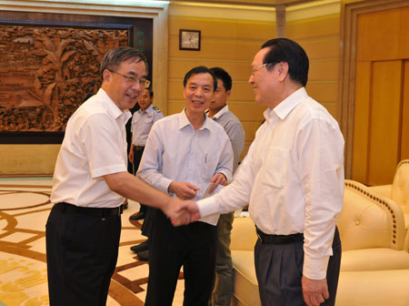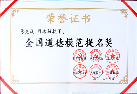 中共中央政治局委员、广东省委书记胡春华接见全国道德模范提名人、我院总院长徐克成,2013年9月27日下午5时,在省委一号楼贵宾厅,中共中央政治局委员、省委书记胡春华接见2O13全国道德模范和道德模范提名人共十人,我院徐克成总院长接受接见。省文明办负责人向胡书记介绍了徐院长的先进事迹,徐院长向胡书记表示,他要走出医院,将医院的技术和服务扩展到社会,他作为广东生命之光癌症康复协会名誉会长,要建好这个协会,将关怀送到广大癌症病人。胡书记当场指示有关领导,给予支持。
