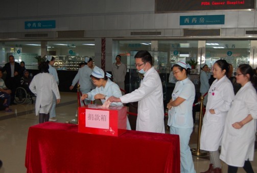 2013年11月16日早上9时30分,复大肿瘤医院举行为援助菲律宾台风灾难受害者的捐款活动,在左建生总裁、徐克成总院长、刘建国总经理、牛立志院长等领导的带领下,全体医务人员及后勤行政人员热情高涨,踊跃参与,奉献爱心,菲律宾驻广州领事馆的代表还亲临现场见证。据统计,本次捐款达5万元人民币。