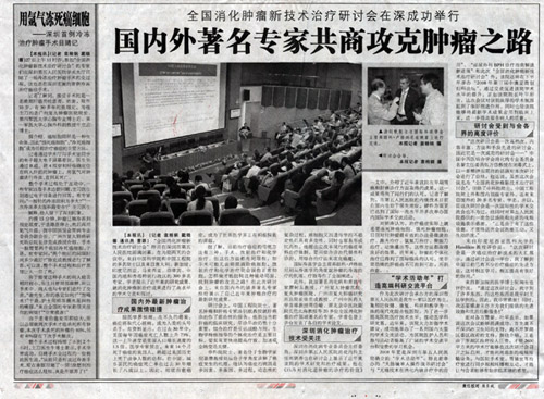 由中国中西医结合学会消化病专业委员会主办、广州复大肿瘤医院和深圳市第五人民医院承办的全国肿瘤新技术治疗研讨会于2008年7月25日-28日在深圳市第五人民医院学术会议厅召开。中国中西医结合学会副会长危北海教授参加会议,作了“中西医结合:创建具有我国特色的肿瘤防治学”的报告。