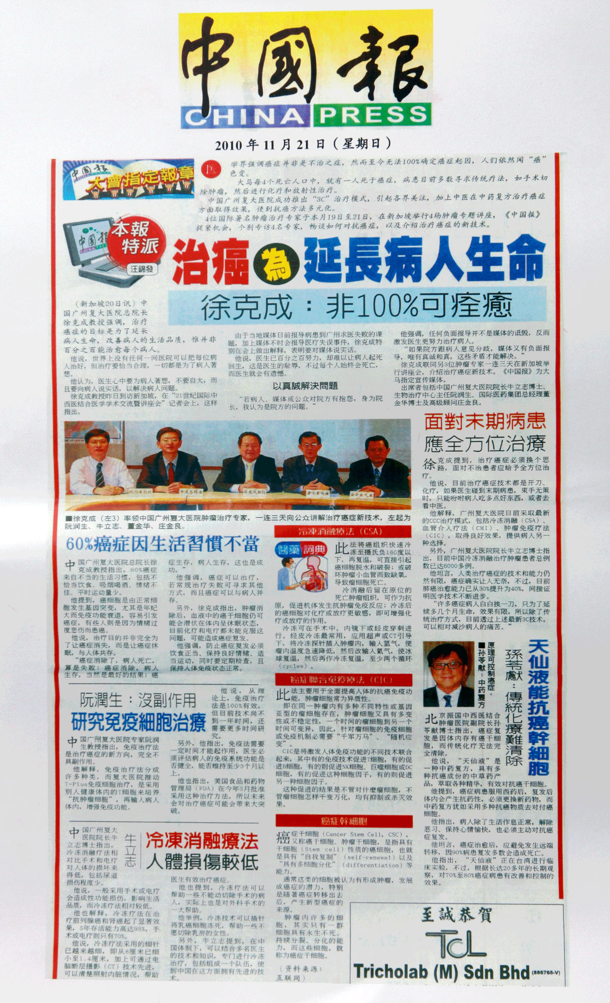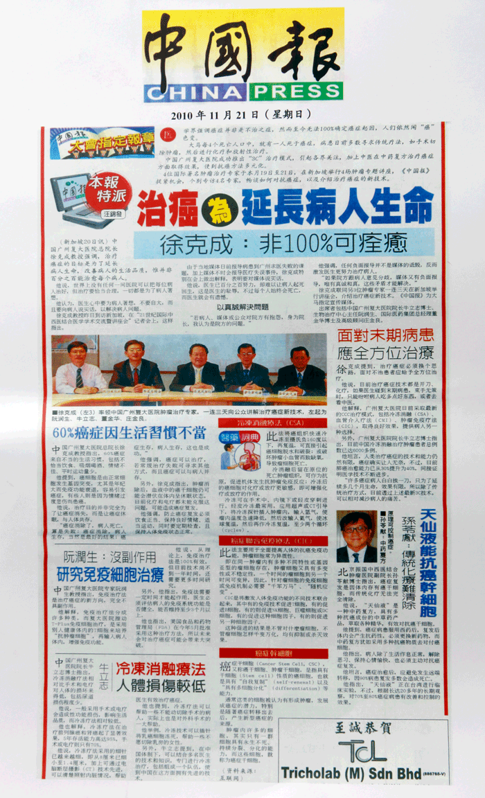 马来西亚《中国报》:“治癌为延长病人生命”