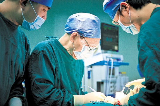2013年11月的一个早上,他站在手术台前,正给病人切除面部一块巨大海绵状血管瘤,只见他右手握着手术刀,左手握着血管钳,一点一点地分离血管,结扎、止血,有条不紊……