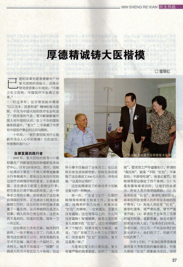 《广东党风》杂志05期刊载《厚德精诚铸大医楷模》
