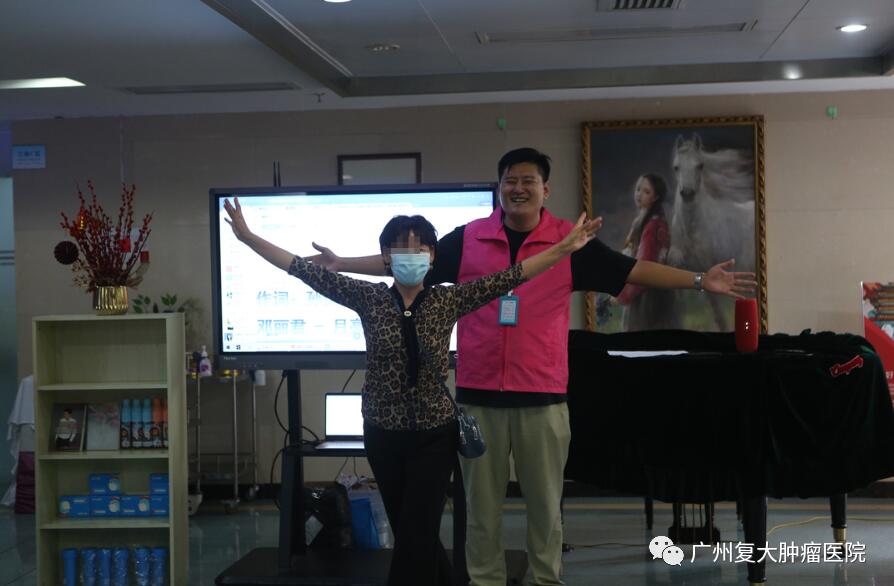 而借着这个健康知识讲座,活动现场医护人员和住院患者及家属同台弹唱,氛围融洽。患者蒙叔叔的钢琴演奏、大家现场歌曲合唱,让不少阿姨忍不住摇动自己的身姿,跳起舞来。大家在一片片欢声笑语中度过。