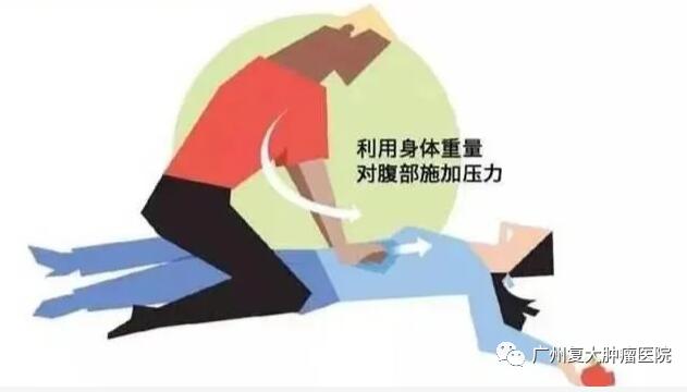 采用仰卧位,抢救者骑跨在病人髋部,按上法推压冲击脐上部位,这样可以抬高膈肌,使气道瞬间压力迅速加大,将堵塞的食物冲出气道。