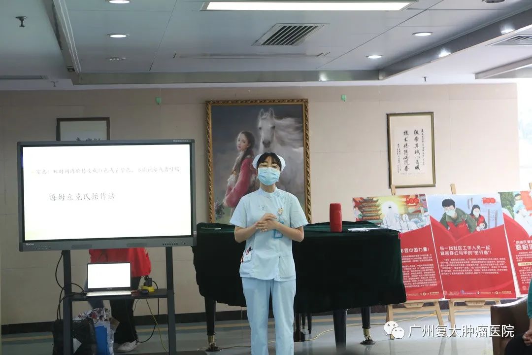 生活中我们经常会遇到,有人因为误吸而出现异物堵塞气道的事件。此时如果得不到及时救治,患者很可能会因为呼吸困难而死亡。近日,广州复大肿瘤医院开展一节实用的科普讲座——《食物误吸急救方法》,为在院患者及家属讲解海姆立克氏操作法。