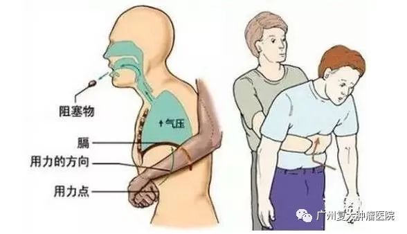 采用坐位或者立位,抢救者站在病人背后,双臂环抱病人,一手握拳,使拇指掌关节突出点顶住病人腹部正中脐上部位,另一只手的手掌压在拳头上,连续快速向内、向上推压冲击6-10次。