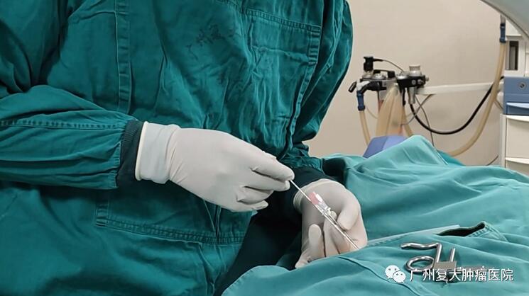 放射性粒子植入治疗是一种局部植入放射粒子的近距离疗法,常用125碘粒子,通过植入术将其植入肿瘤体内及其可能发生转移的组织间,形成局部持续辐射,是不同于外放疗的持续性内放射治疗,可提高靶区的照射量,有效抑制肿瘤细胞的有丝分裂和再增殖。